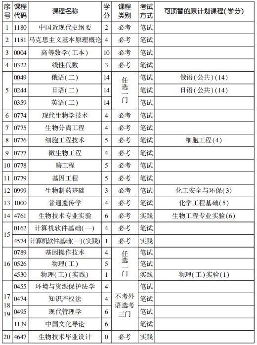 - 2022年10月天津自考本科生物技術(shù)專業(yè)計劃(停考過渡)