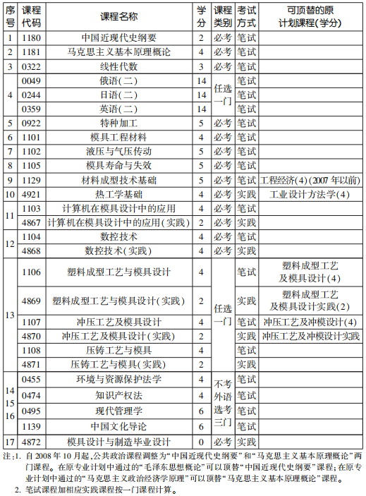 2022年4月天津自考本科模具設(shè)計(jì)與制造專業(yè)計(jì)劃