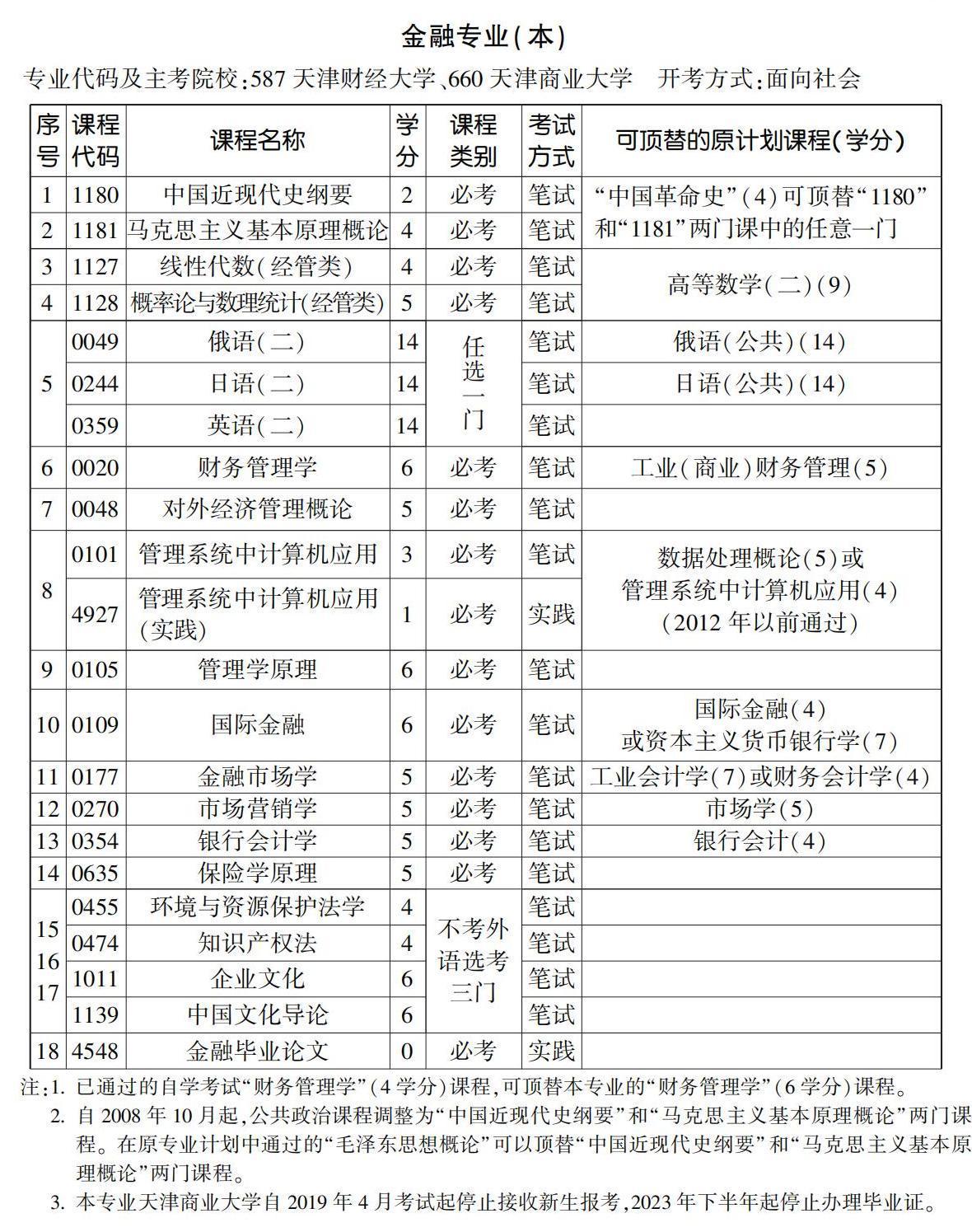 注:天津商業(yè)大學該專業(yè)停止安排考試和停止辦理畢業(yè)證的時間均延期至2023年6月30日。