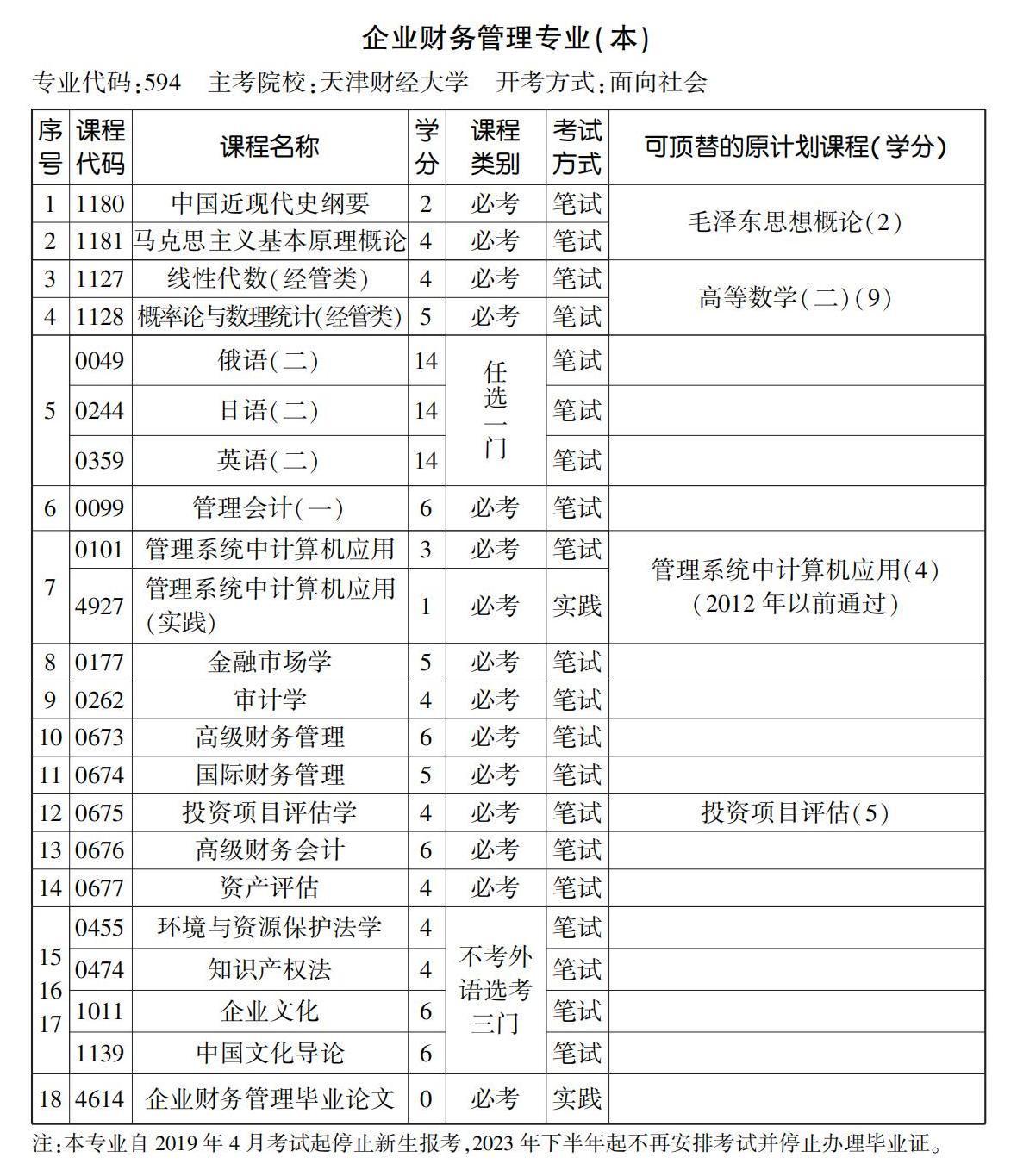 2022年10月天津自考本科企業(yè)財(cái)務(wù)管理專業(yè)計(jì)劃(停考過渡)