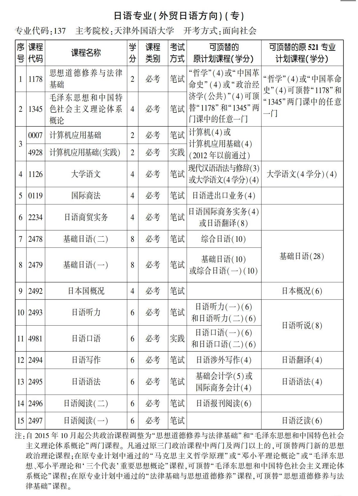2023年10月天津自考??迫照Z(外貿(mào)日語方向)專業(yè)計劃
