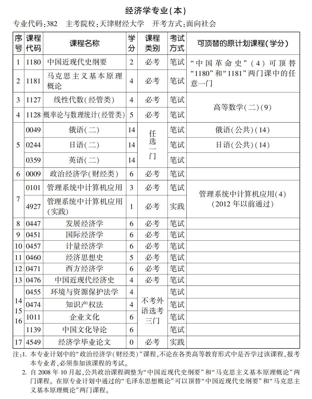 2023年10月天津自考本科經(jīng)濟(jì)學(xué)專業(yè)計(jì)劃