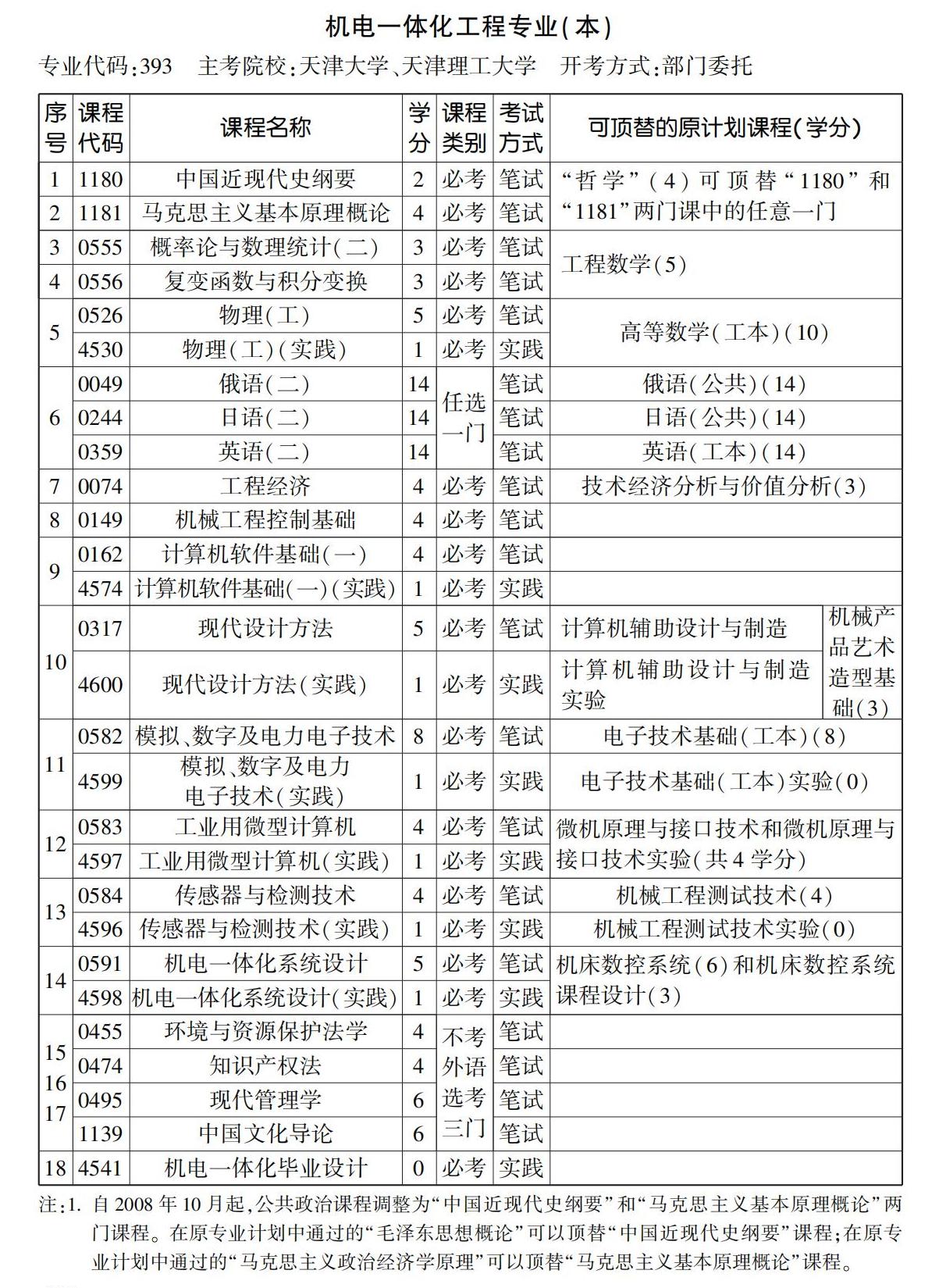 2023年10月天津自考本科機電一體化工程專業(yè)計劃