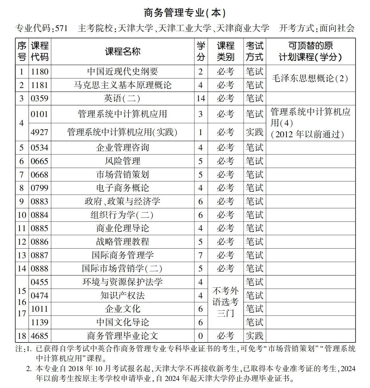 2023年10月天津自考本科商務(wù)管理專業(yè)計(jì)劃