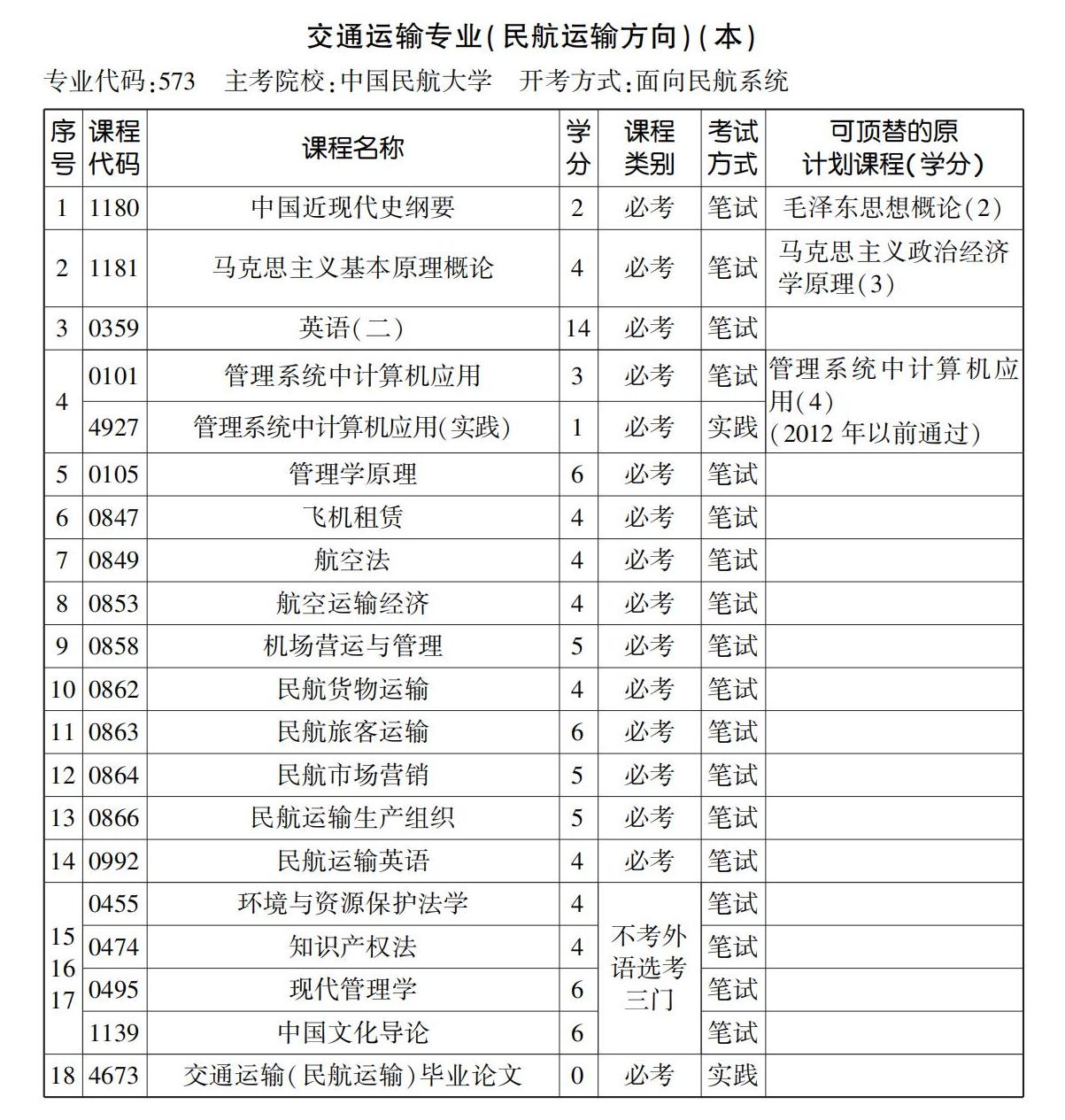 - 天津自考573交通運(yùn)輸(民航運(yùn)輸方向)(本)新舊專業(yè)計(jì)劃替代方案