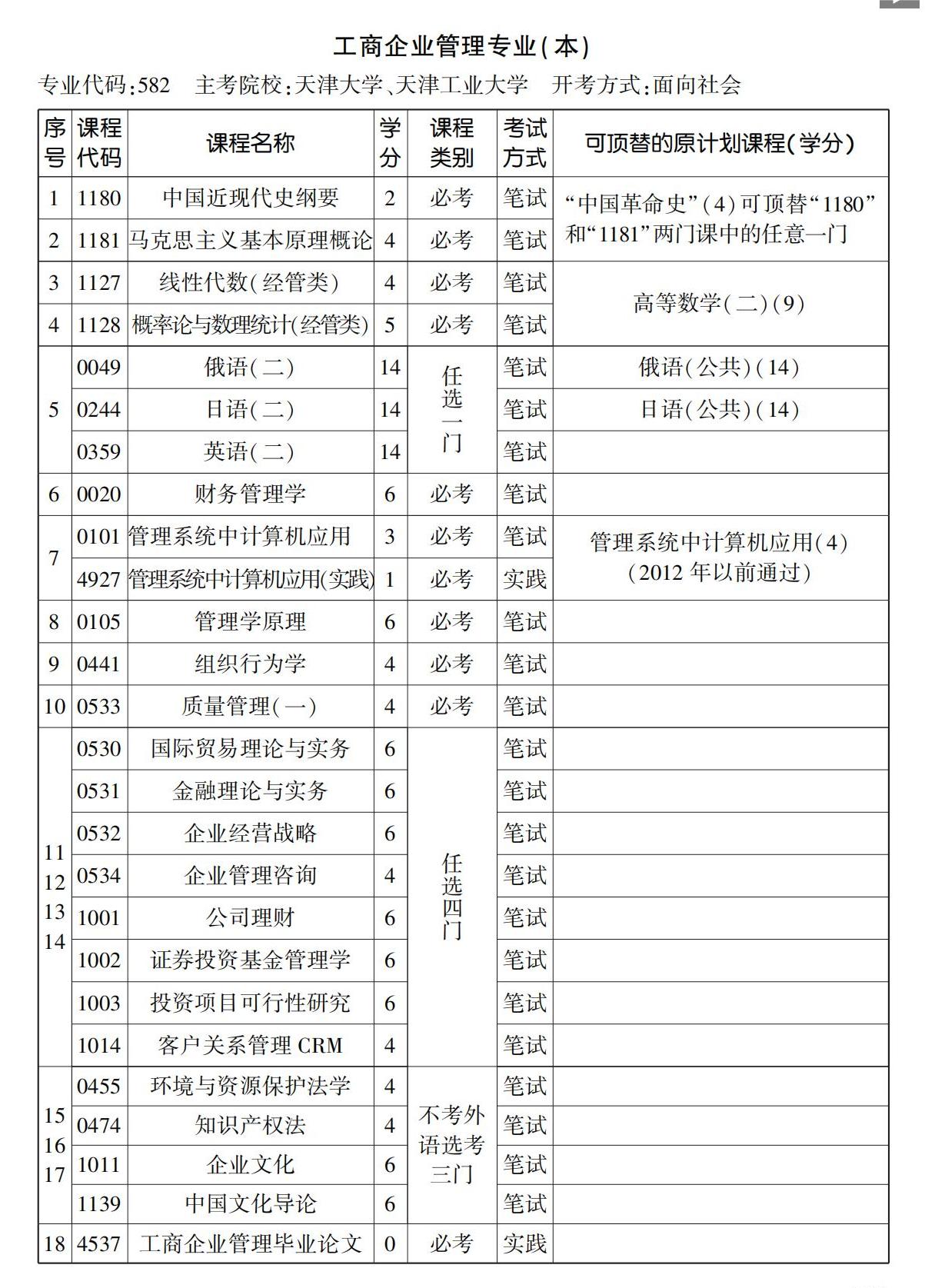 - 2023年10月天津自考本科工商企業(yè)管理專業(yè)計(jì)劃