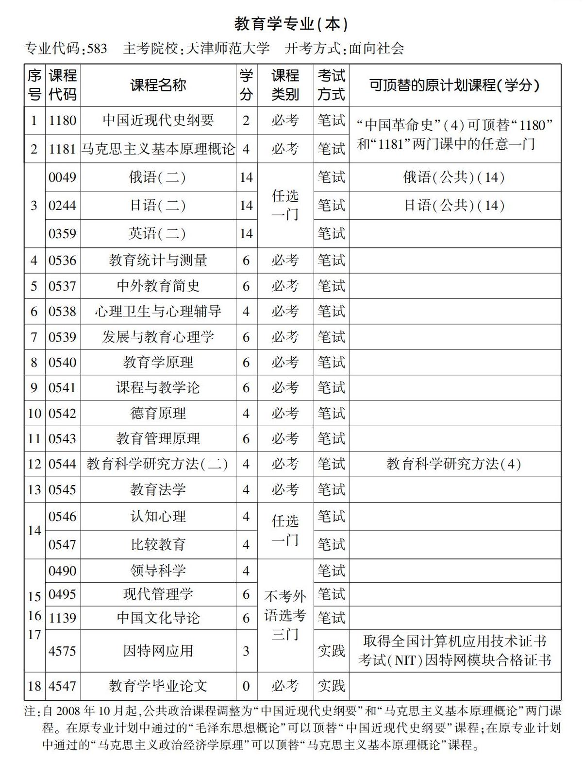 2023年10月天津自考本科教育學(xué)專(zhuān)業(yè)計(jì)劃