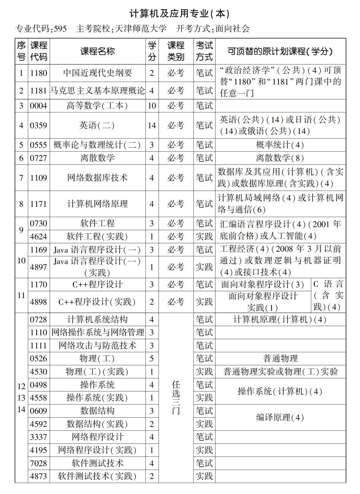 2023年10月天津自考本科計算機及應(yīng)用專業(yè)計劃
