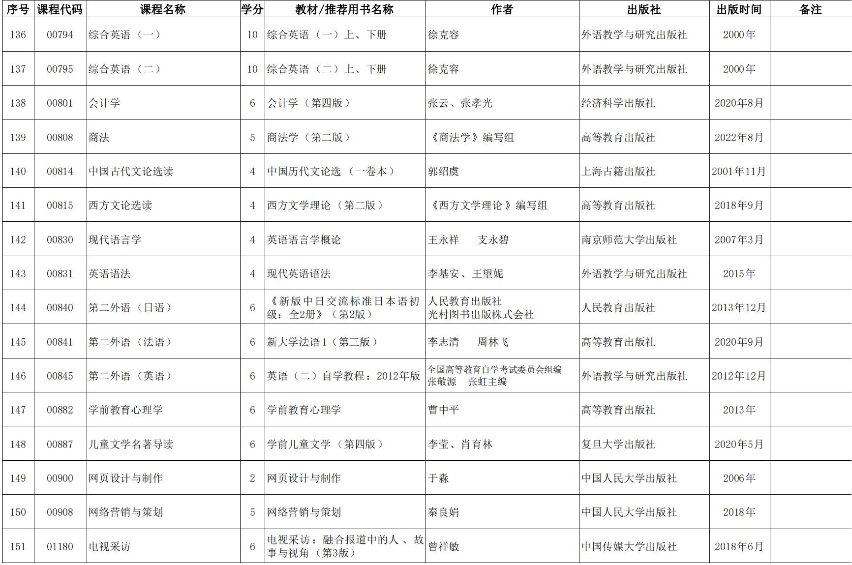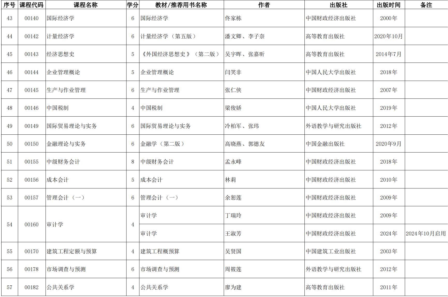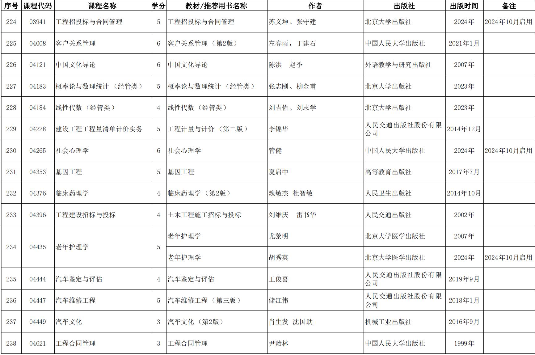 2024年天津市高等教育自學考課程使用教材表