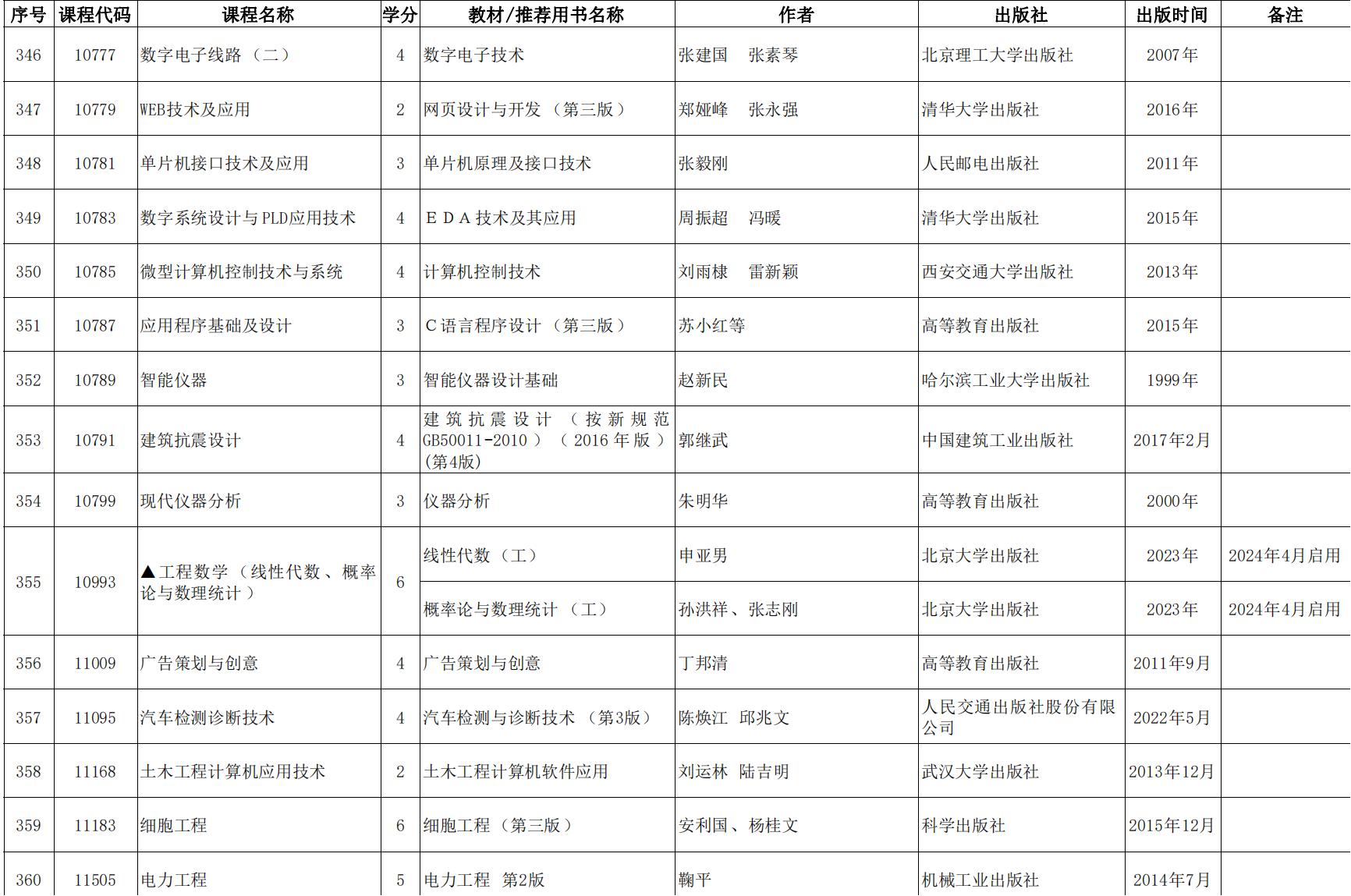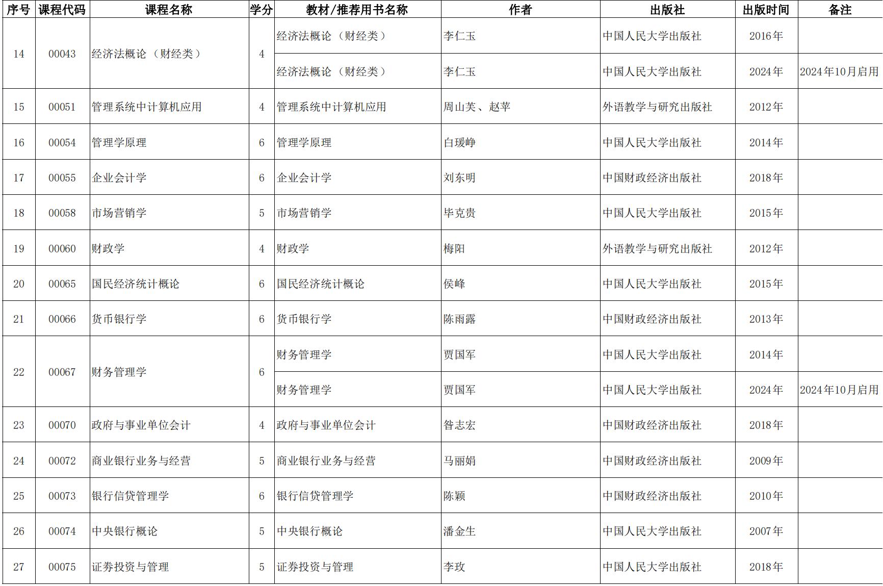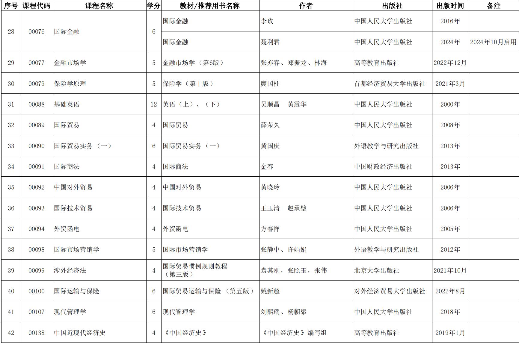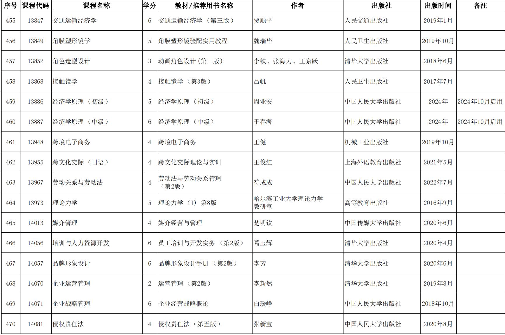 2024年天津市高等教育自學考課程使用教材表