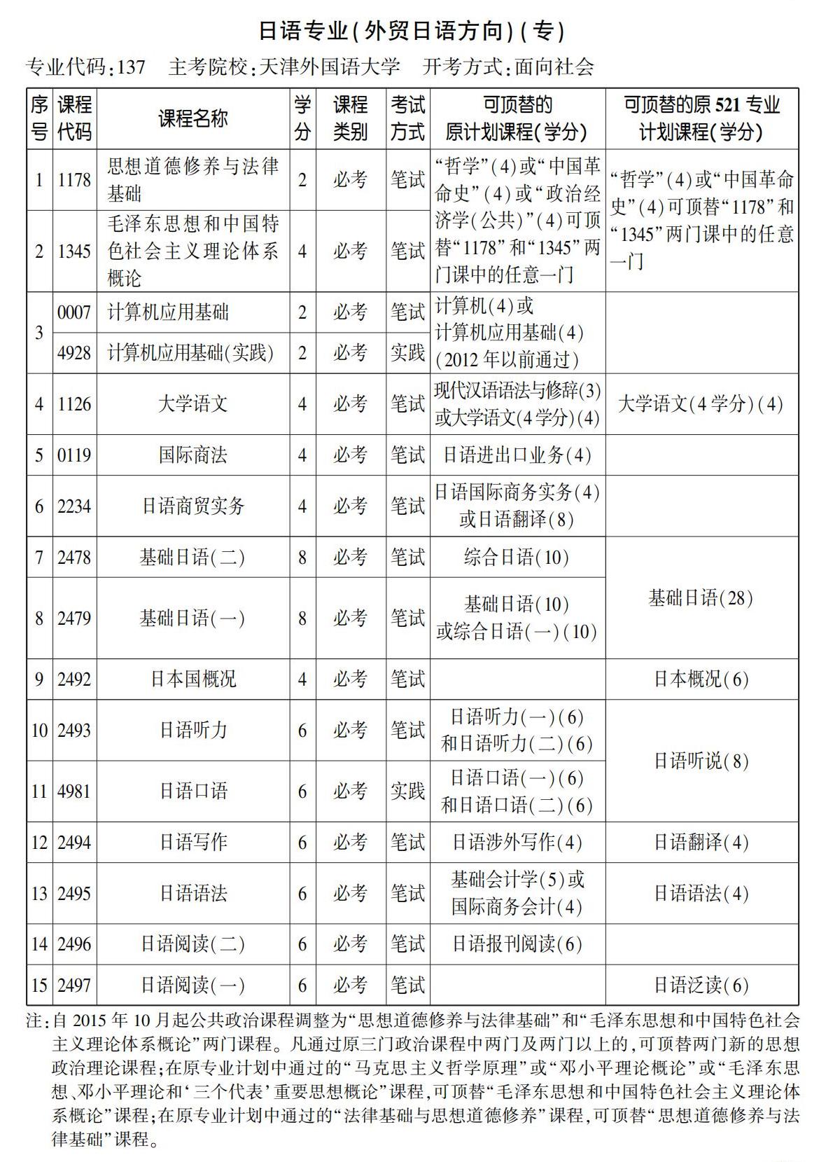 - 天津自考137日語(yǔ)(外貿(mào)日語(yǔ)方向)(專(zhuān))新舊專(zhuān)業(yè)計(jì)劃替代方案