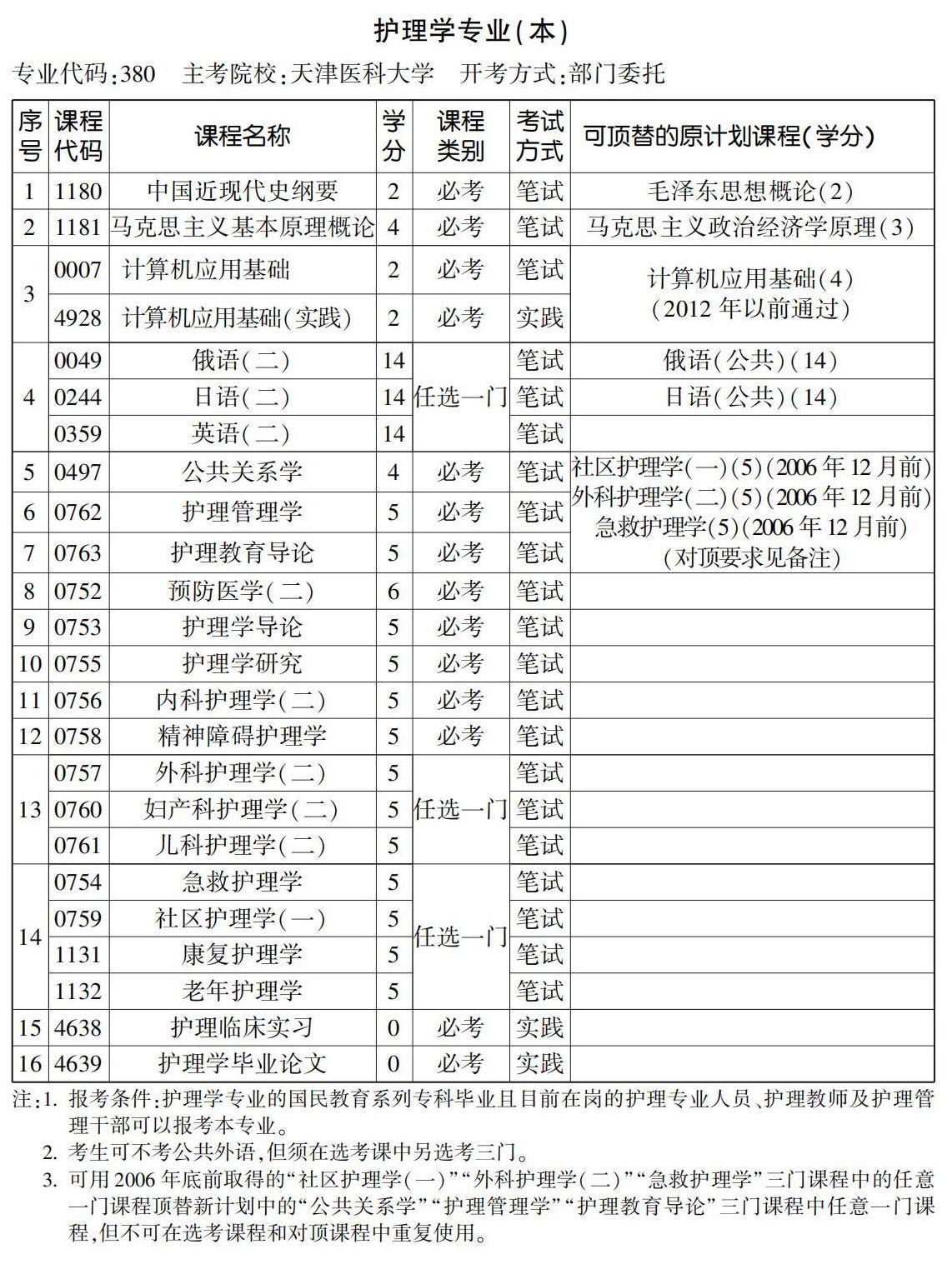 2023年4月天津自考本科護理學專業(yè)計劃