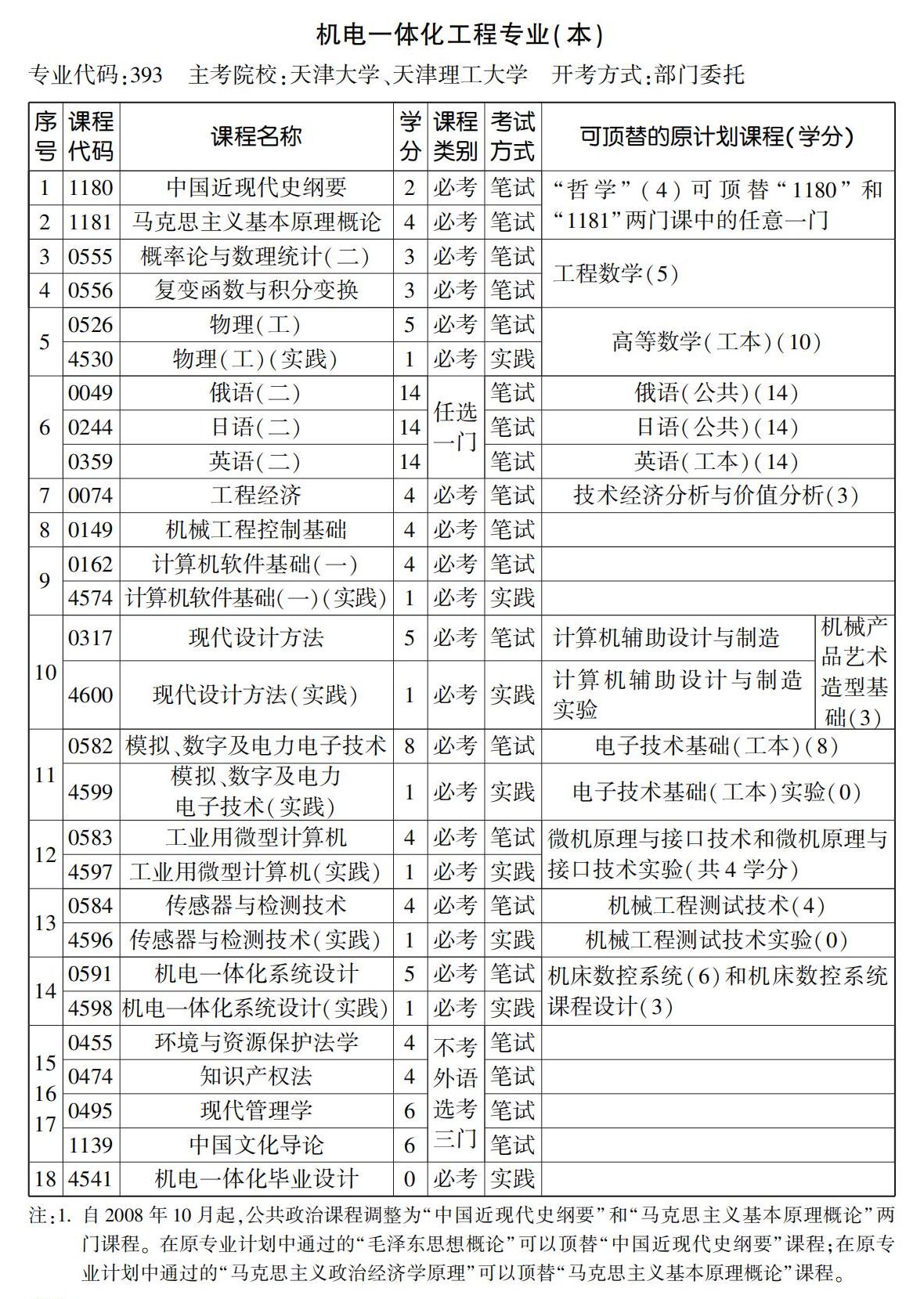 2023年4月天津自考本科機電一體化工程專業(yè)計劃