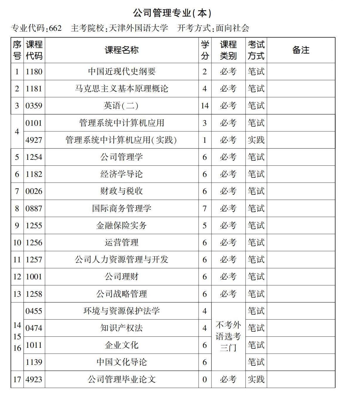 2023年4月天津自考本科公司管理專業(yè)計劃