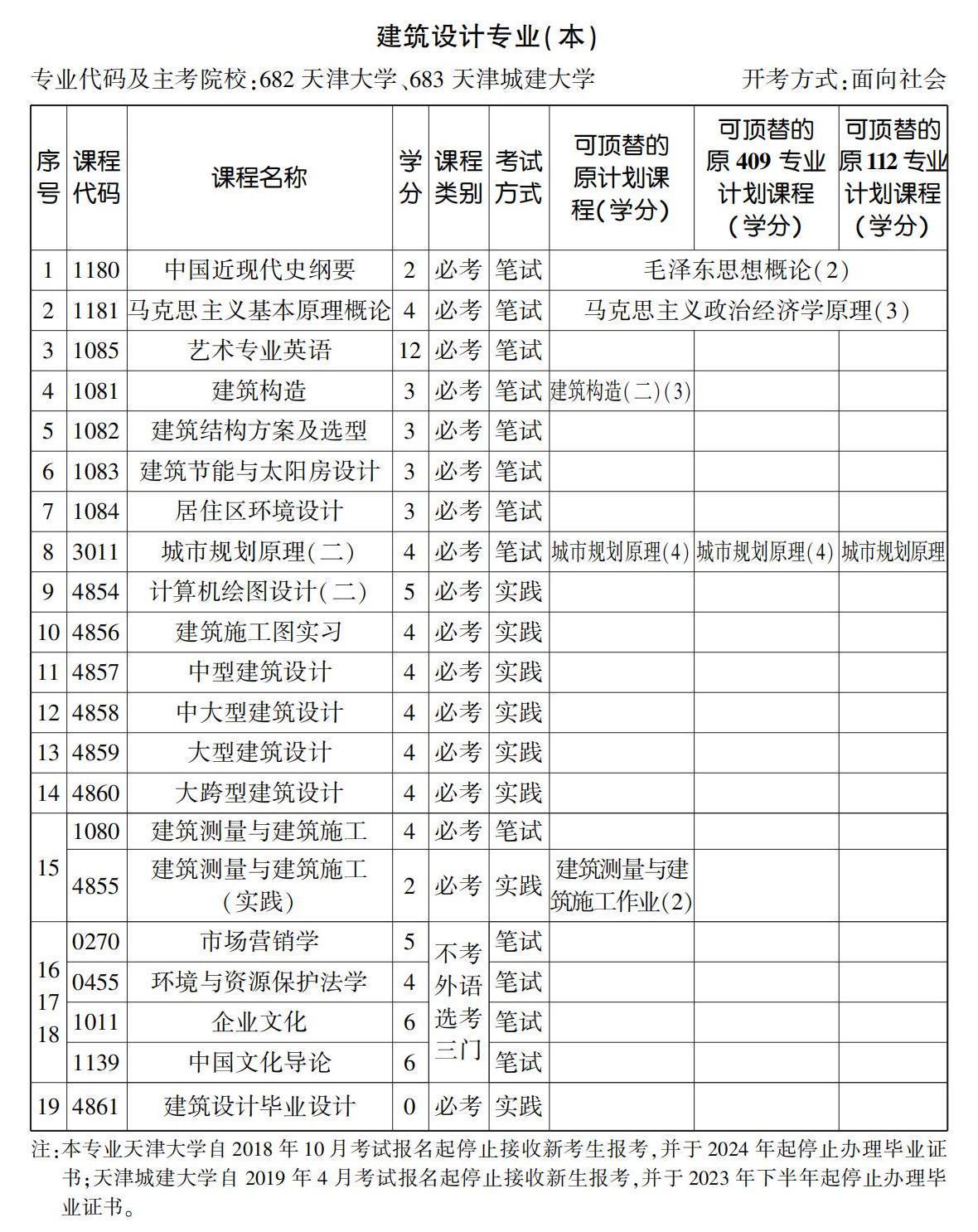 - 2023年10月天津自考本科建筑設(shè)計(jì)專業(yè)計(jì)劃(停考過渡)