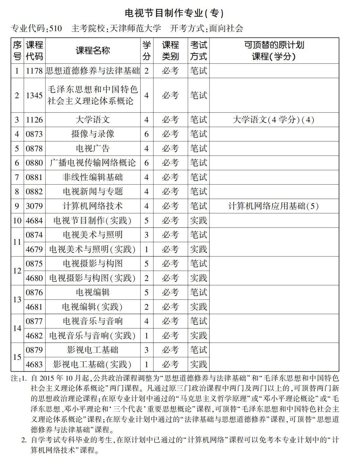 2022年10月天津自考??齐娨暪?jié)目制作專業(yè)計(jì)劃