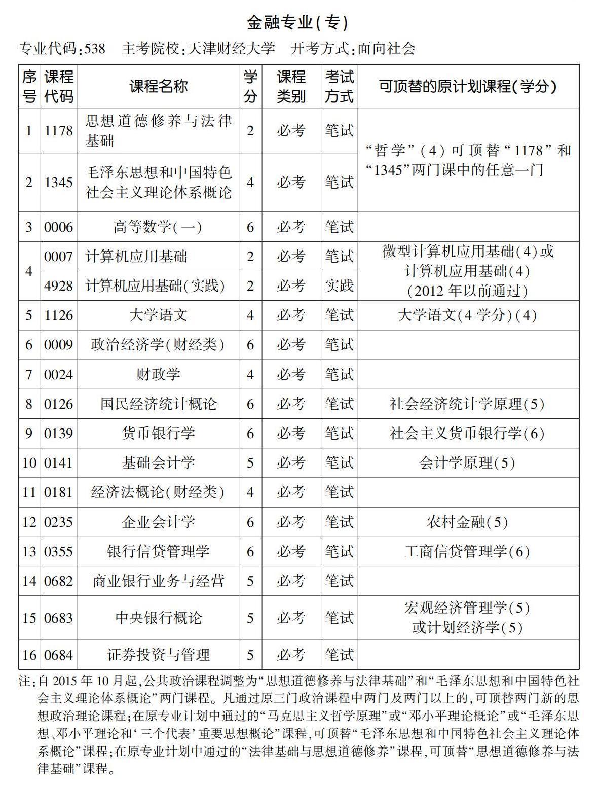 2022年10月天津自考??平鹑趯I(yè)計(jì)劃