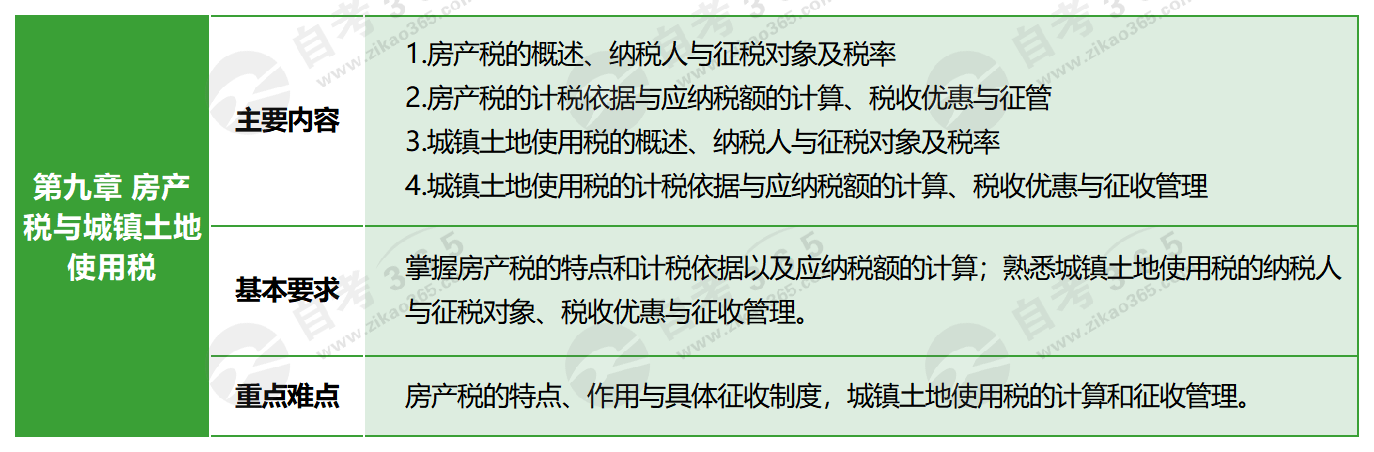 2024年自考中國稅制知識點框架:第九章 房產(chǎn)稅與城鎮(zhèn)土地使用稅