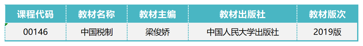 自考中國稅制(2019版)的考生在購買教材時,需要注意一下版本問題。一般都是按以下版本購買教材: