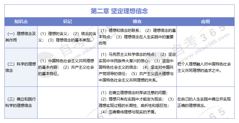 2024年自考思修知識點框架:第二章 堅定理想信念
