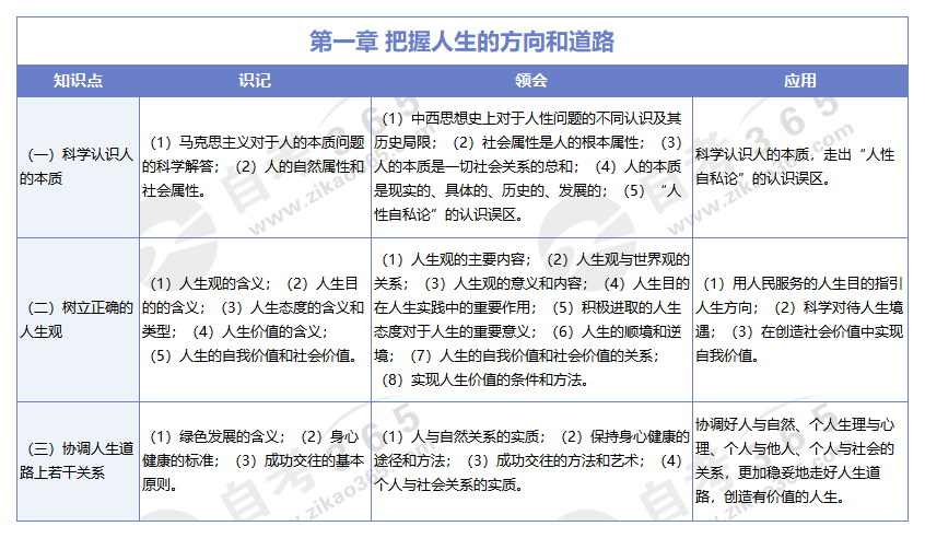 2024年自考思修知識點框架:第一章 把握人生的方向和道路