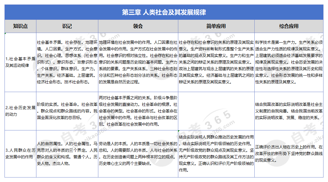 想要提高備考效率,必然需要將知識(shí)點(diǎn)進(jìn)行針對(duì)性,有區(qū)別地學(xué)習(xí)。想要快速從知識(shí)點(diǎn)貫通到做題,考生可以按照下表中的識(shí)記領(lǐng)會(huì)應(yīng)用要求來學(xué)習(xí)馬原第三章的知識(shí)點(diǎn)。