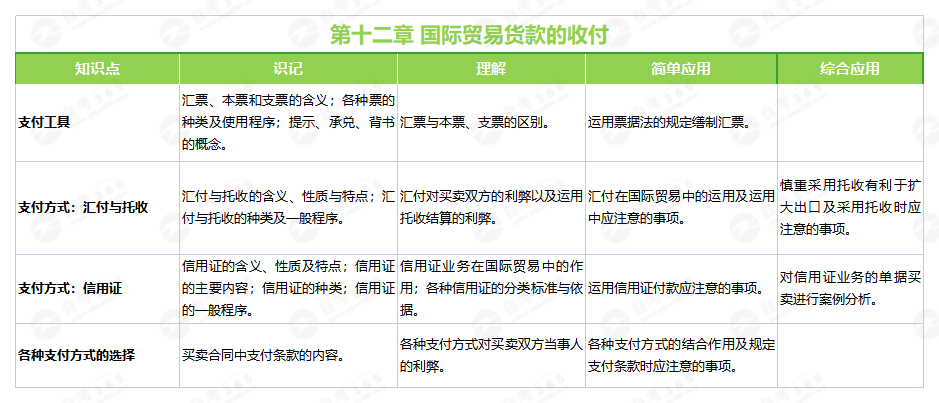 為此,網(wǎng)校為考生精心整理的2024年國際貿(mào)易理論與實務(wù)考試大綱中第十二章的知識架構(gòu),快來看看吧!
