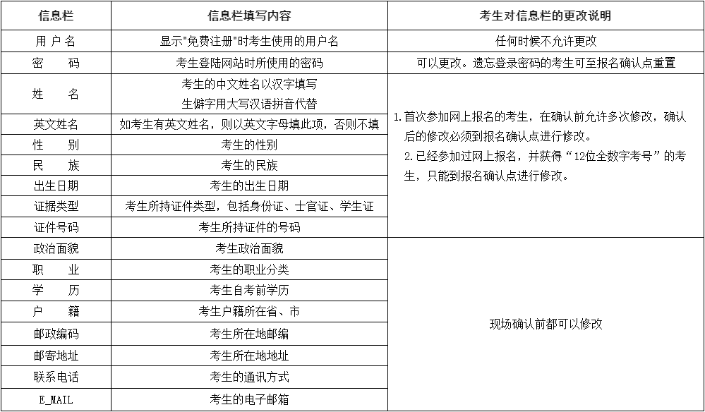 注意:所有考生(包括已參加過前期報名工作的考生)均需再次進行信息提交及后續繳費、確認等環節,否則報考信息(包括前期已確認的報考信息)無效,不得參加考試。