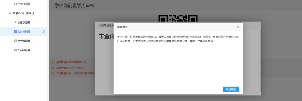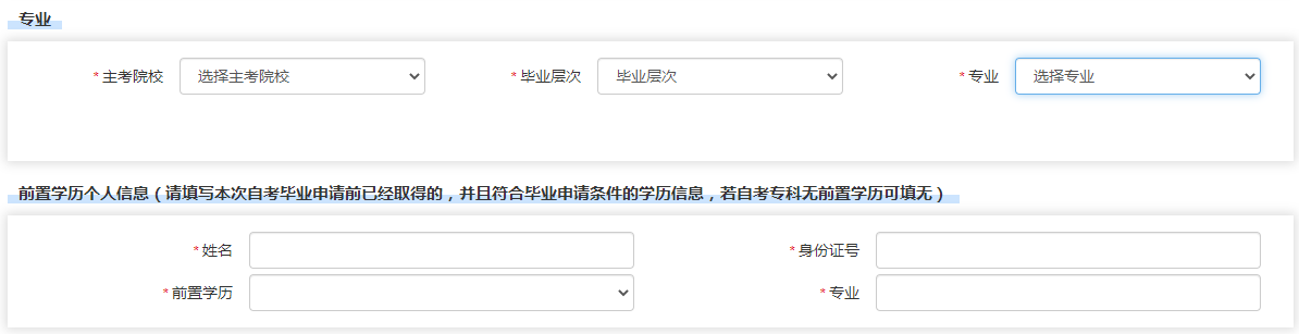 注:申請(qǐng)本科畢業(yè)證的考生,需進(jìn)行前置學(xué)歷審核。